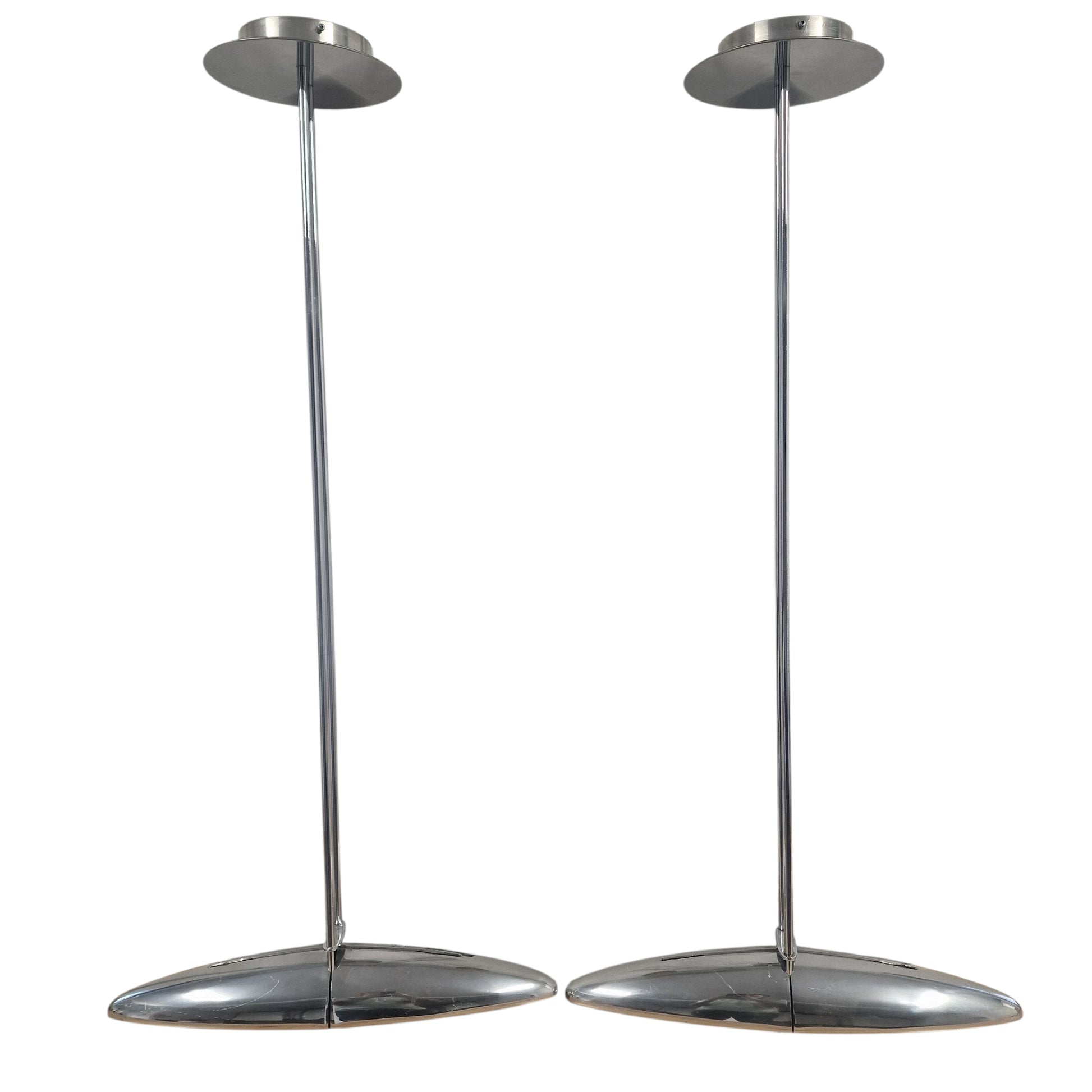 Pareja de lámparas de techo diseñadas por el arquitecto Jorge Pensi para la editorial B.LUX modelo Olympia .Fabricadas en aluminio inspirada en los aviones de de la segunda guerra mundial. Se puede regular en altura .