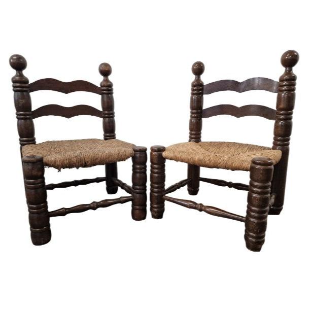 Pair of chairs by the famous French designer Charles Dudouyt, 1940s. It has the low size and brutalist style that characterized his designs.