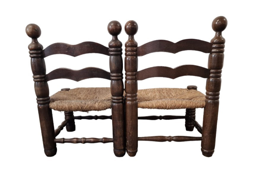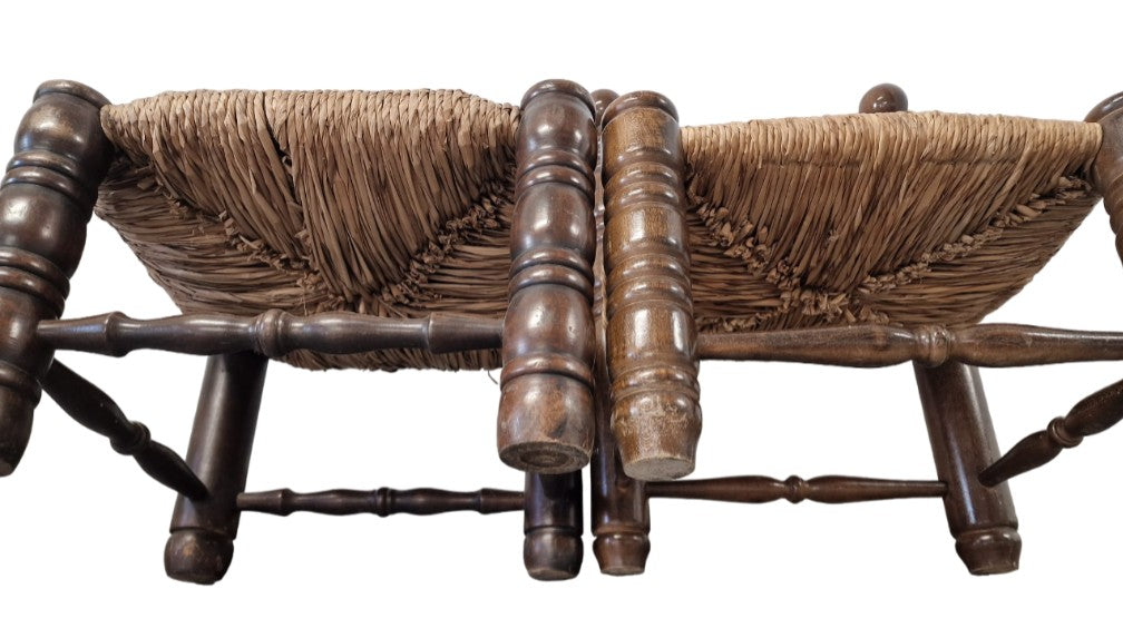 One made of beech wood and the other of oak, they have straw seats in good condition.