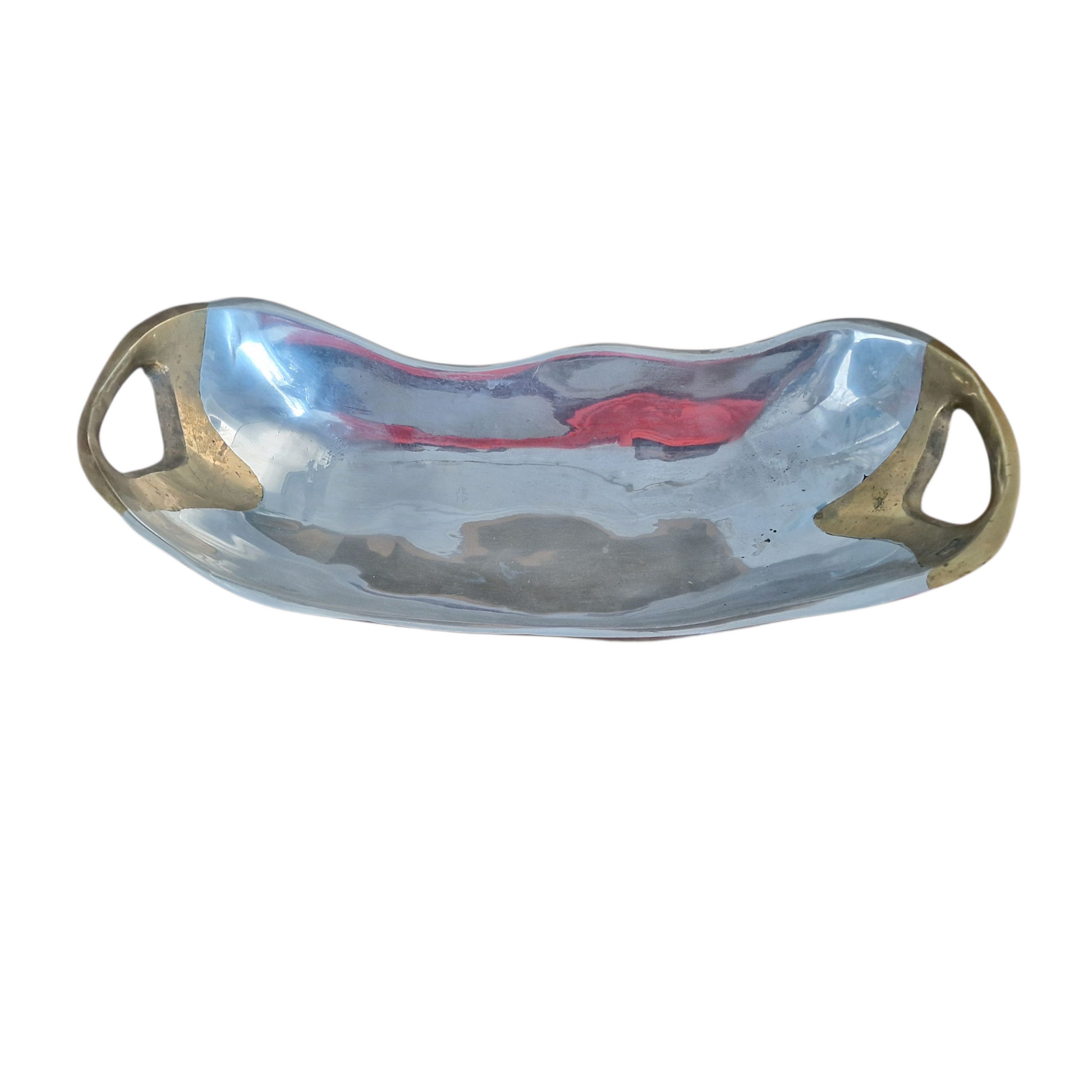 Cuenco decorativo fabricado en aluminio y latón del escultor brutalista. Gran tamaño y en muy buen estado. Marcas de fabricante en la base.