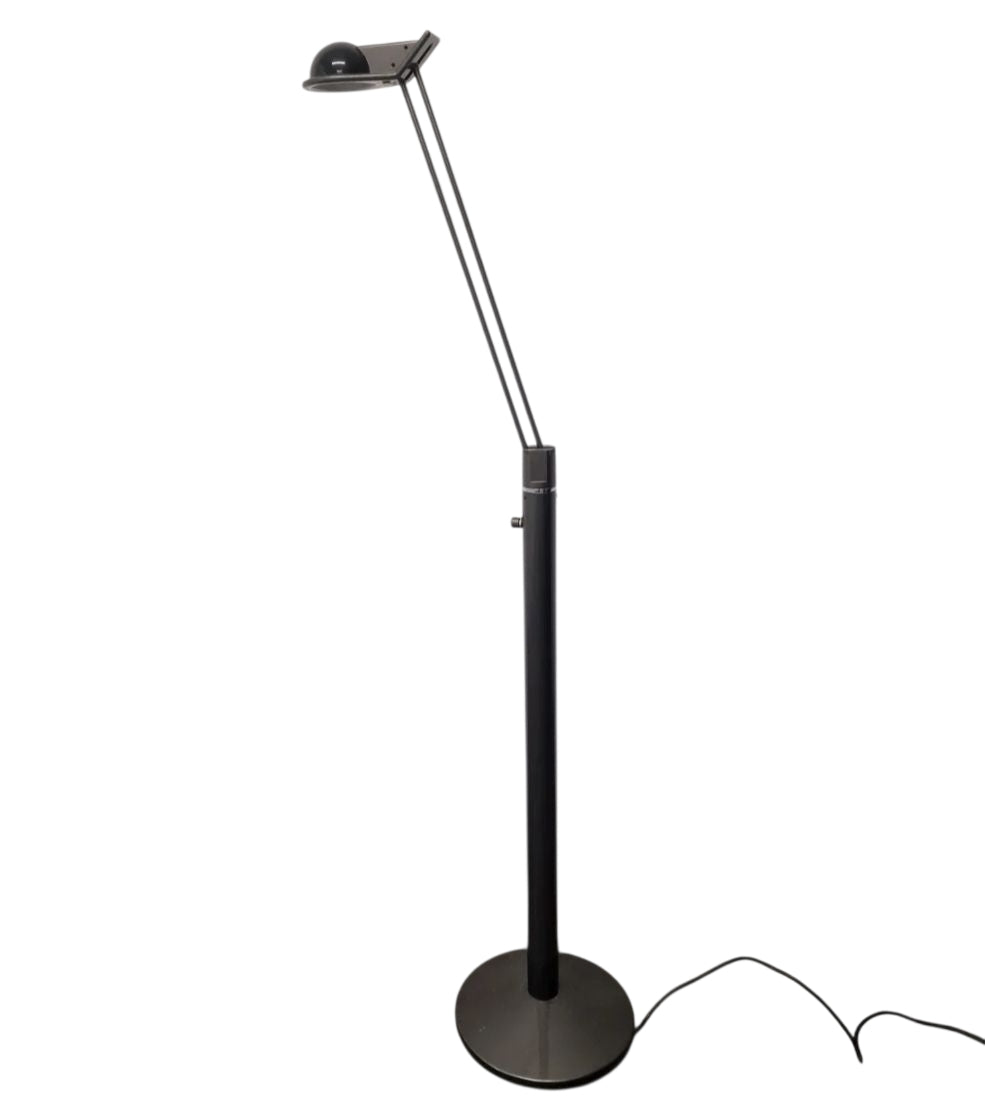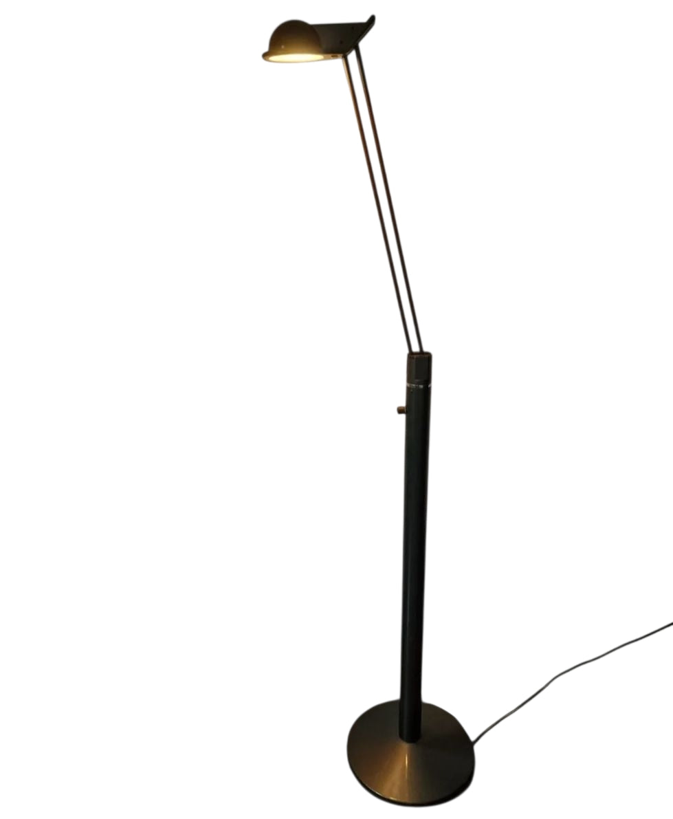 Lámpara de pie del prestigioso fabricante Metalarte, diseño de los años 80 de Josep Lluscá. Se puede regular la intensidad de luz y la altura. Etiquetas de fabricante en el pie y en la base. Fabricación de gran calidad en metal.