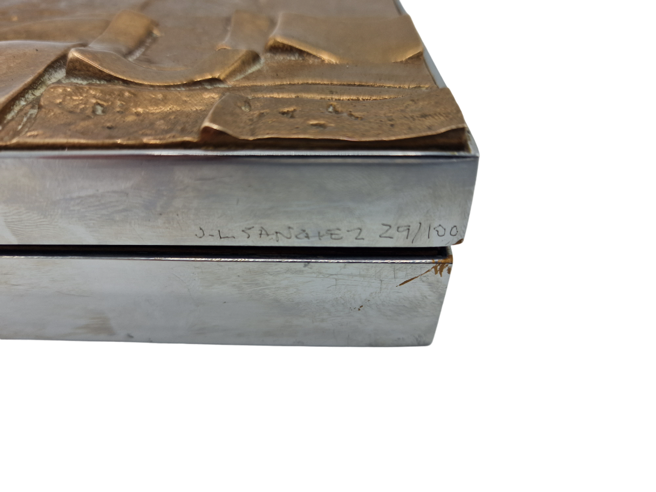 Escultura integrada en una caja del famoso escultor albaceteño Jose Luis Sanchez (1926-2018), firmada y numerada en el lateral.