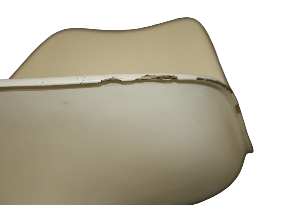 La carcasa es de fibra de vidrio lacada en blanco, base giratoria de aluminio fundido recubierta de material plástico blanco. Una unidad realmente rara ya nunca ha sido restaurada ni pulida.
