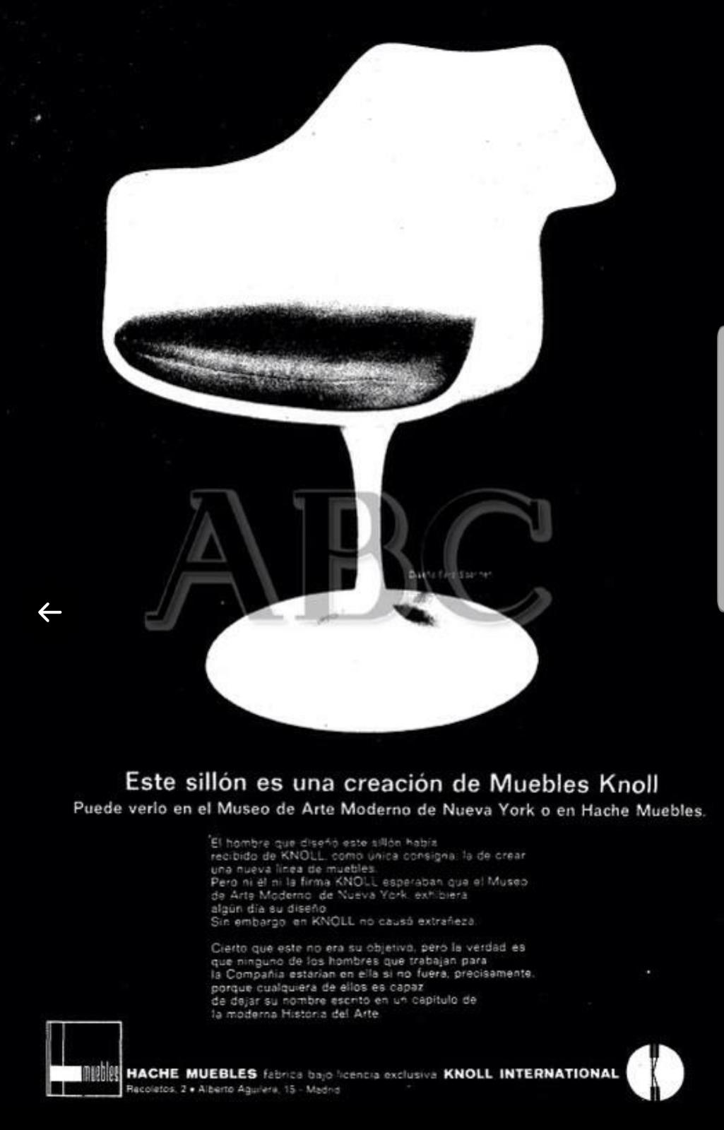 Silla Tulip (tulipán) fabricada en los años 60 por la empresa que tenia la licencia KNOLL INTERNACIONAL "Hache Muebles" en España. Con la misma calidad y materiales que Knoll exigía.